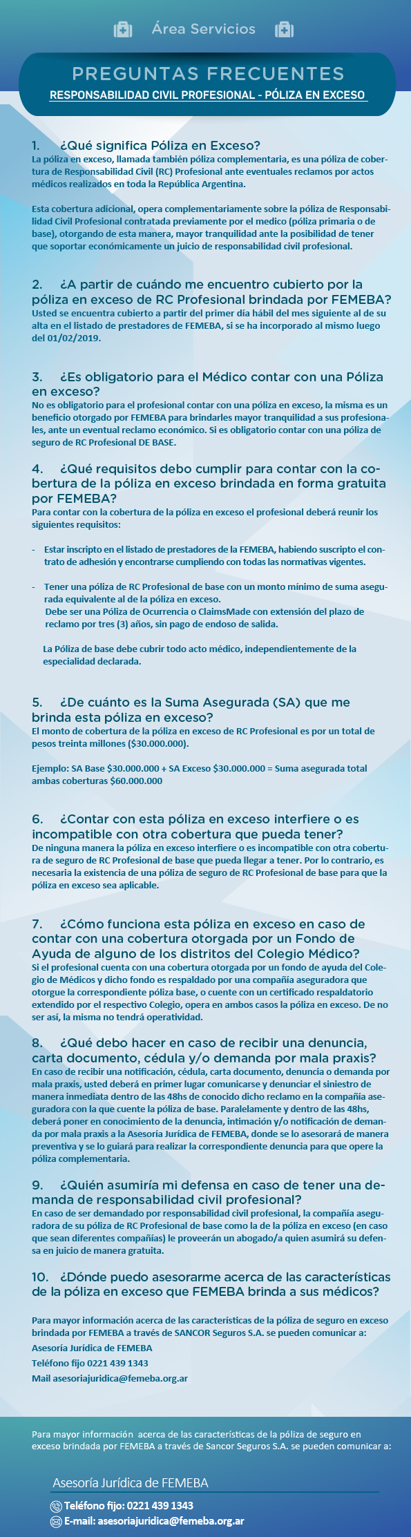 FEMEBA brinda a todos los médicos adheridos al listado de prestadores una póliza complementaria de treinta millones de pesos en forma gratuita.